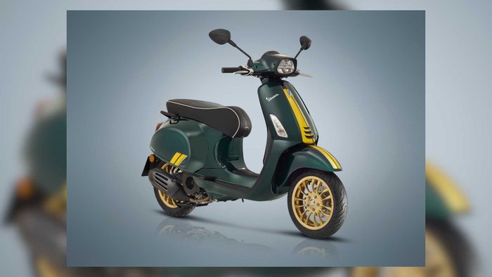 Kedua warna yang membaluti bodi Vespa ini datang dengan pelek berwarna gold metallic.