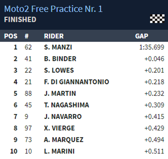 Inilah hasil FP1 Moto2 Valencia 2019 berikut;