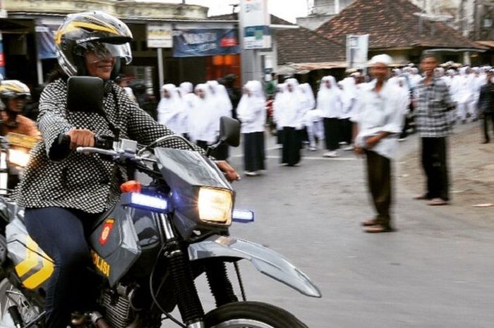 Susi Pudjiastuti naik motor Suzuk DR400
