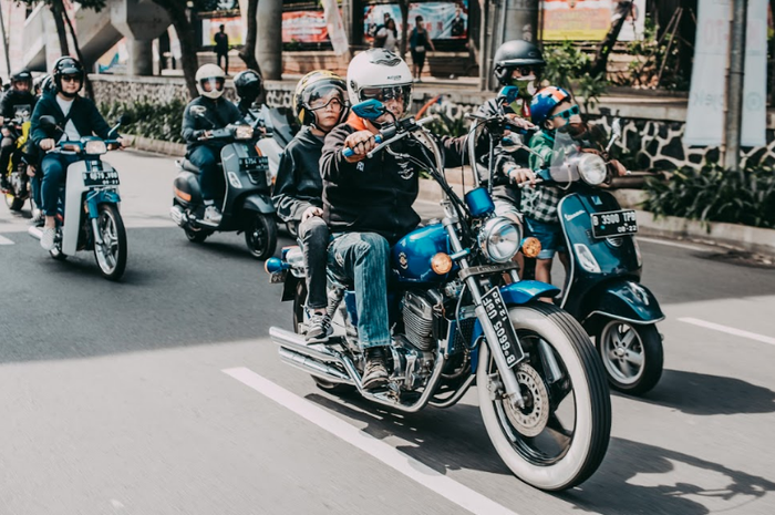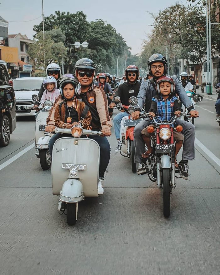 Asyiknya riding dengan lakon "Bapak Budi Berkendara" sang bapak membawa anaknya untuk sunmori bareng.