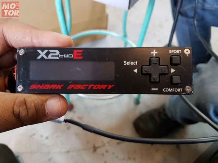 Untuk mengatur compression dan rebound sokbreker Shark Factory X2E ini menggunakan remote khusus.