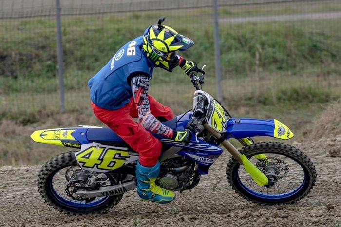 Aksi Valentino Rossi meliuk-liuk di lintasan motocross di atas motor Yamaha YZ250F tampak dari video yang diposting di Instagram akun @valeyellow46.