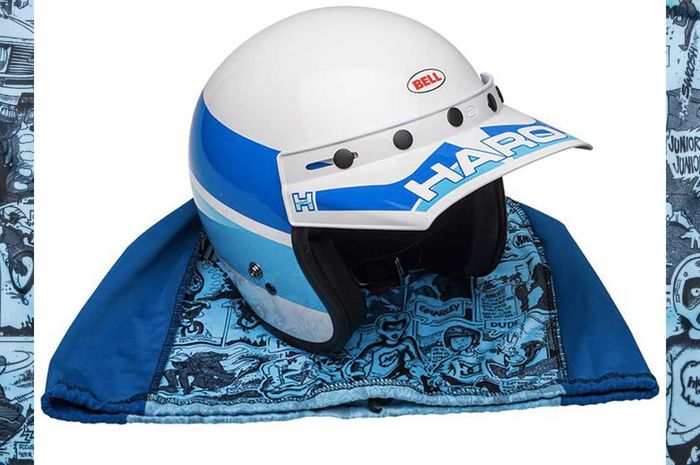 Helm terbaru Bell ini memiliki pet helm yang lebih panjang dan bertuliskan 'Haro' pada bagian atasnya.