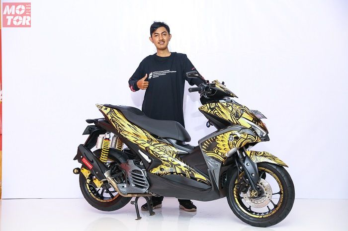 "Jadi motif yang saya ambil adalah burung Garuda atau Garuda Wisnu Kencan," kata Radis Galih, jawara Yamaha Aerox 155 kelas Daily Customaxi Denpasar.
