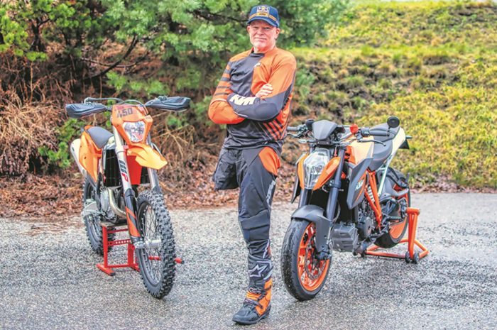 Boive yang merupakan biker Swedia ini, lancar mengendarai motor trail KTM.