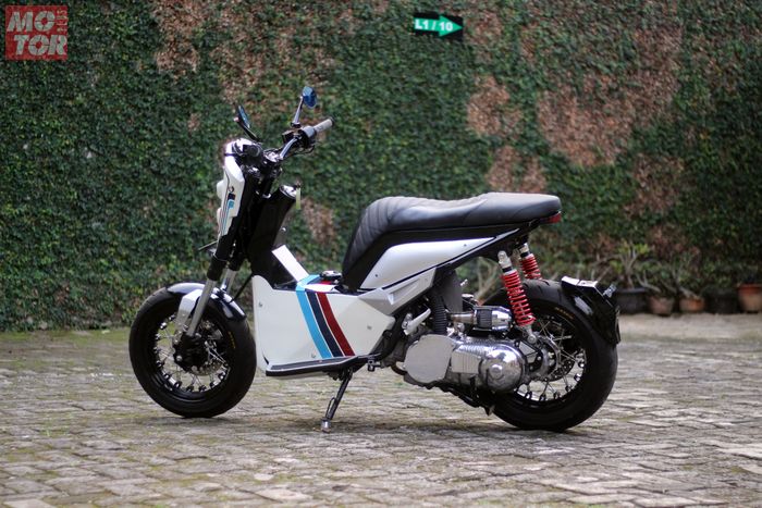 "Ujung rangka dipotong sedikit, lalu dibuat sub frame tambahan menggunakan pipa kotak hollow galvanis tebal 3 mm agar posturnya terlihat lebih tinggi," kata Abram, sapaannya.