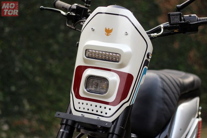 Sentuhan akhir cover headlamp, deck bodi, dan bodi samping dilabur dengan warna putih dan silver yang berpadu grafis khas BMW, sesuai permintaan Dayat.