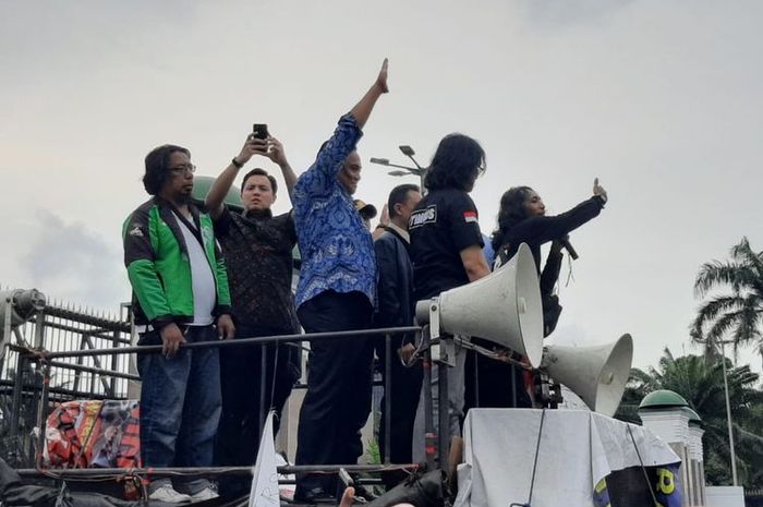 MOTOR Plus-Online.com - Ratusan ojek online menggeruduk Gedung DPR RI, Jakarta.