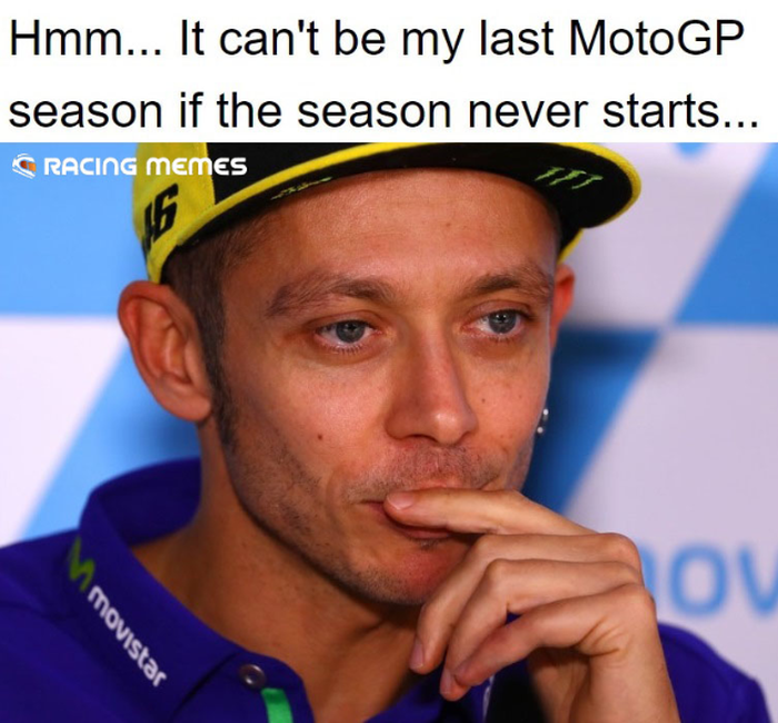 Banyak netizen yang ramai-ramai membuat meme atau gambar kocak mengenai penundaan MotoGP 2020.