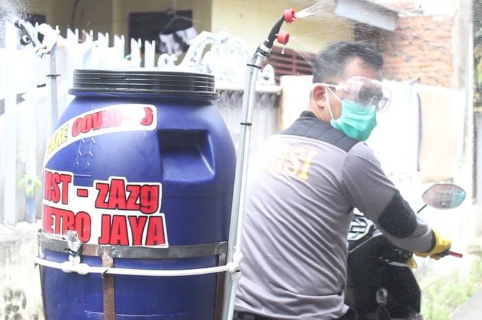 MOTOR Plus-online.com - Seorang Polisi memodifikasi Honda BeAT nya menjadi Water Cannon penyemprot desinfektan sebagai langkah peduli sesama.