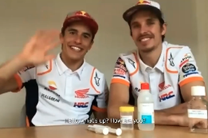 MOTOR Plus-online.com - Agar tangan tetap steril dan bersih, duo pembalap Repsol Honda Marc dan Alex Marquez kasih tips bikin hands sanitizer di rumah.