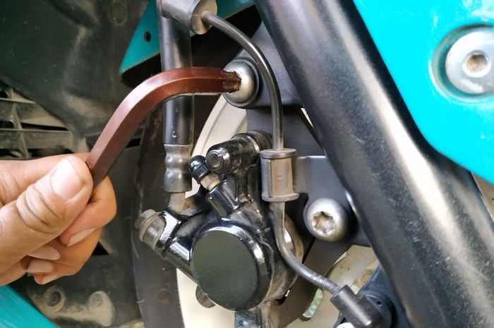 Kabel berwarna hitam ini, berada depan kaliper serta slang rem, dan menempel pada piringan hitam dalam cakram.