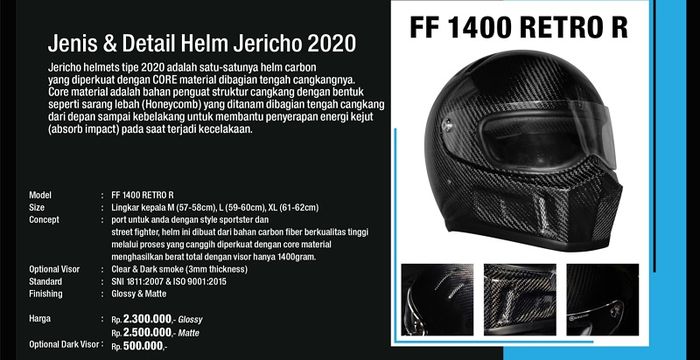 Saat ini PT JKI telah meluncurkan 4 jenis helm berbahan serat karbon.