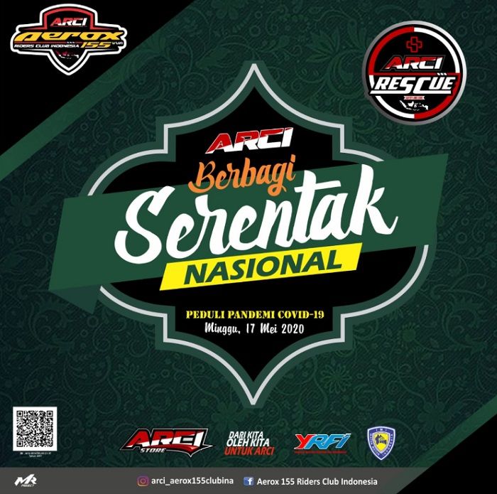 Aerox 155 Riders Club Indonesia (ARCI) menggelar kegiatan baksos (bakti sosial) serentak di seluruh chapter di Indonesia.