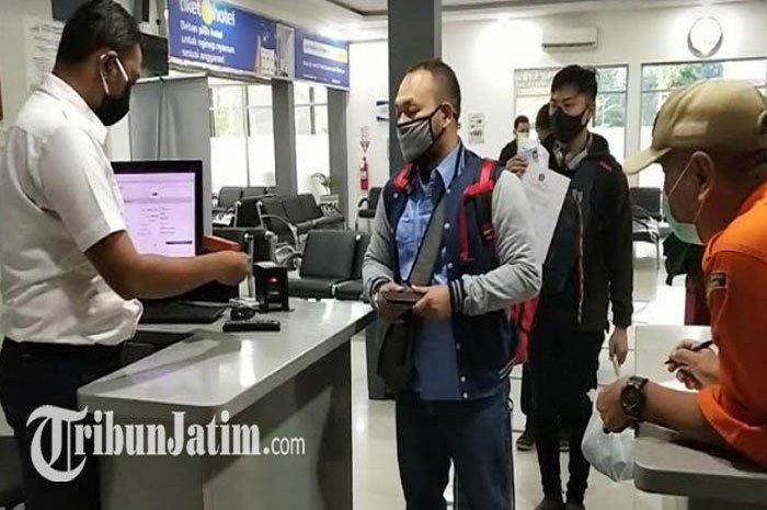 Bagi calon penumpang yang berkasnya lengkap dan sesuai akan diizinkan oleh Tim Satgas Covid-19 yang ada di stasiun untuk membeli tiket kereta api di loket.