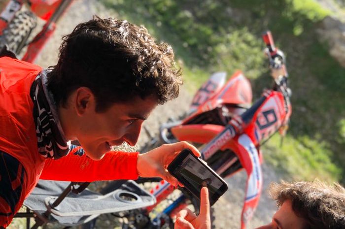 Marc Marquez saat latihan ngegas motor garuk tanah atau motocross tidak memilih motor tipe 4-Tak semial Honda CRF450.