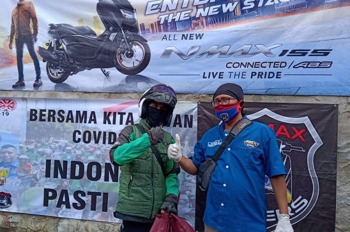 MOTOR Plus-online.com - Salut, di masa pandemi virus corona GOMAX (Gojek NMAX) Riders peduli bagi-bagi sembako.