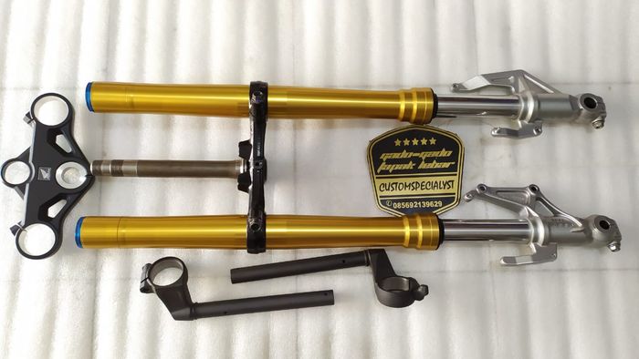 Yang peru diubah lagi tentu saja bracket kaliper disesuaikan dengan lubang baut di upside down CBR250RR dan mengubah as roda depan.