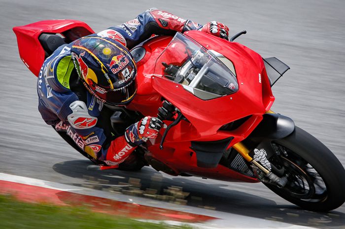 Wajar saja Johann Zarco menunggangi motor superbike Ducati Panigale V4S buat latihan ngegas di sirkuit Misano.