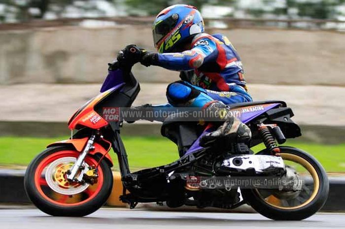 Nah, para pengguna motor matic sekarang menunggu ban balap IRC, yang kembangannya lebih optimal buat trek kering.