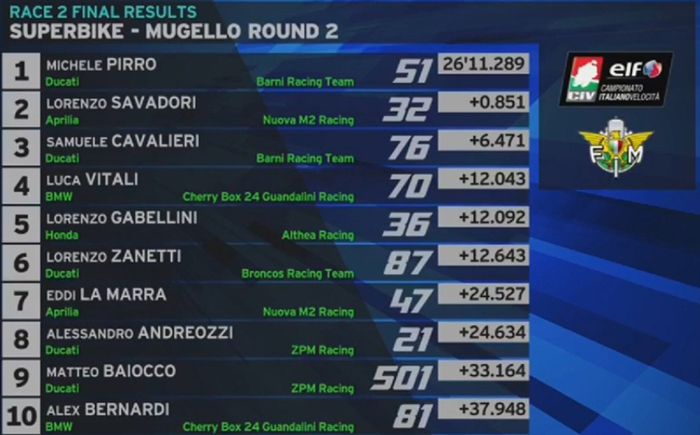 Berikut hasil lomba race 2 CIV Superbike Mugello;