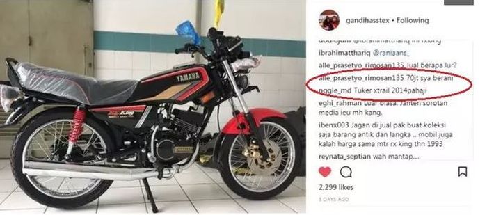 Ternyata, mereka berani membayar Yamaha RX-King miliknya mulai di angka Rp 70 juta.