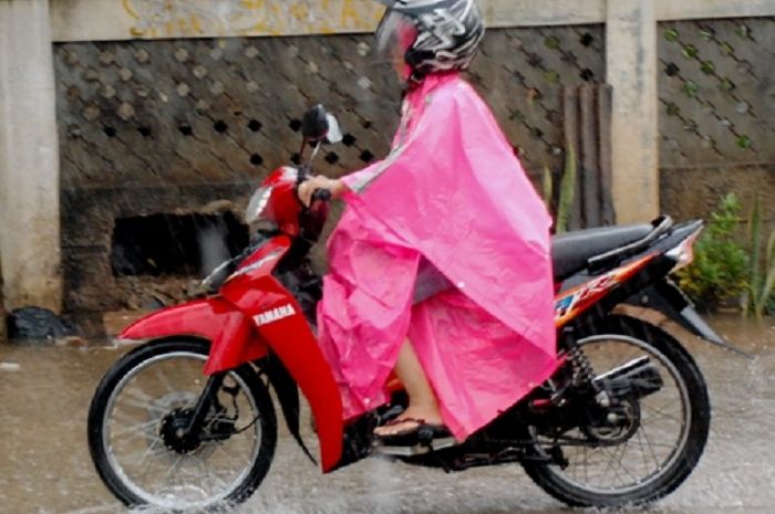 Jangan gunakan jas hujan ponco (lebar) karena rawan nyangkut atau masuk ke dalam gir yang bisa menyebabkan kecelakaan.