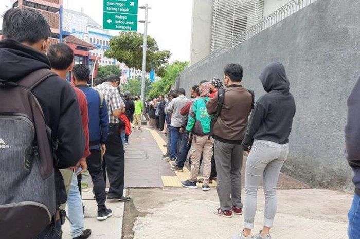 Antrean bahkan sampai memadati trotoar yang ada di sekitar Kejari.