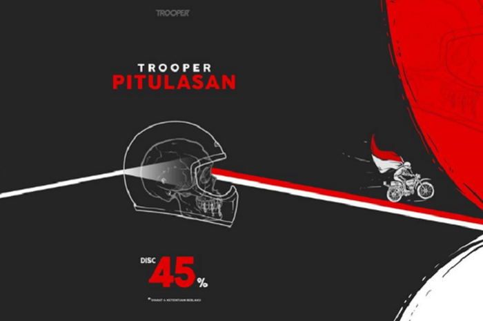 Mumpung lagi momen peringatian hari Kemerdekaan Republik Indonesia yang ke 75, Trooper Custom Helmet kasih diskon.