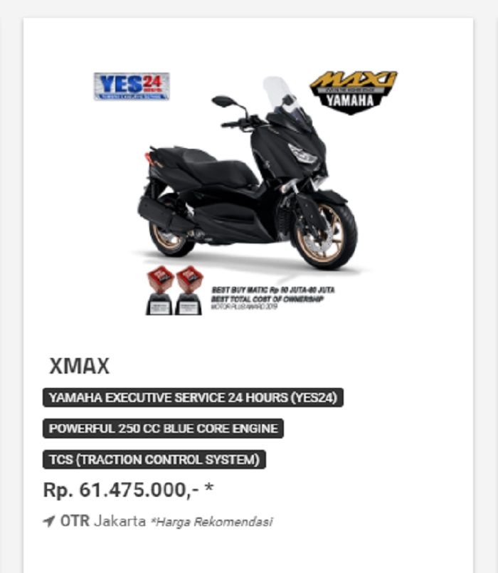 Dilansir dari situs yamaha-motor.co.id, Yamaha XMAX terbaru dibanderol Rp. 61.475.000.