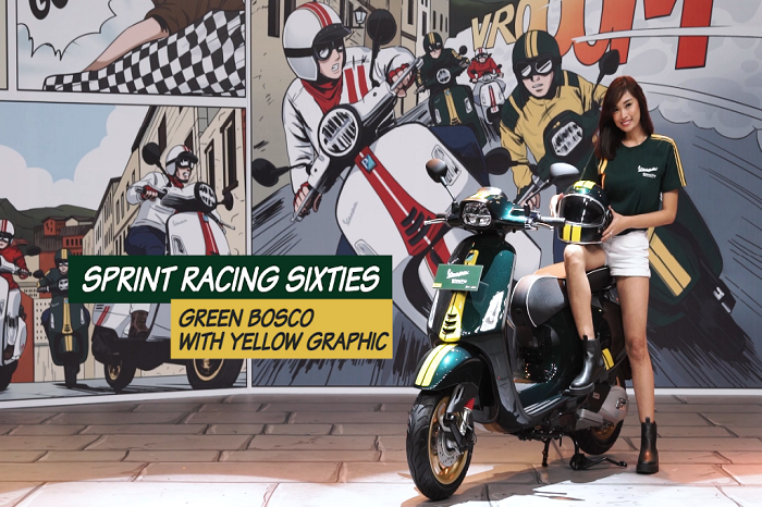 Mulai dari kelir hijau yang mengambil basic Vespa Sprint 150.