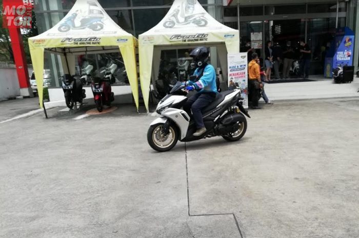 Yamaha DDS Jawa Tengah dan Yogyakarta juga memberikan kesempatan bagi masyarakat setempat untuk merasakan sensasi berkendara All New Aerox 155 Conected di Yamaha Flagship Shop, Jalan Pemuda Semarang.