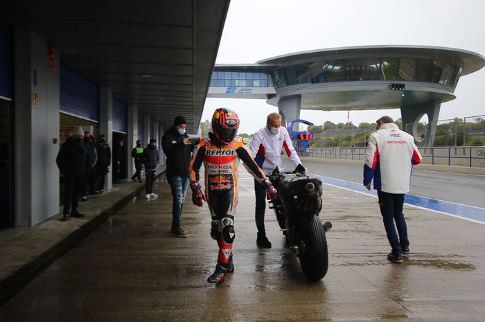 MOTOR Plus-online.com - Nyolong start, pengganti Marc Marquez di MotoGP 2020, Stefan Bradl sudah tes motor MotoGP Honda RC213V versi 2021 di sirkuit Jerez, (20/1/2020).