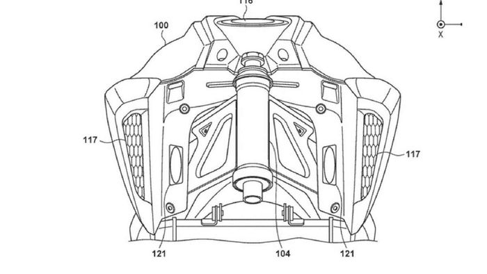 Detail gambar paten ini cukup jelas, terlihat beberapa elemen desain motor listrik diprediksi bakal lebih fungsional.