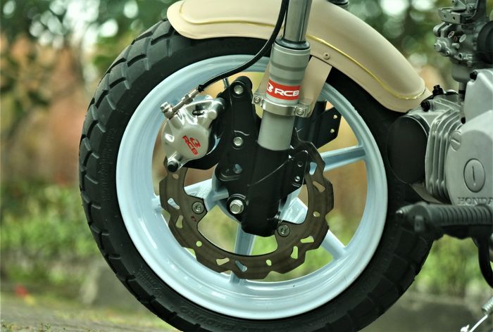 Seperti disk rotor E series 230 mm, kaliper S2 single pod dan slang rem berlapis silikon dari RCB.