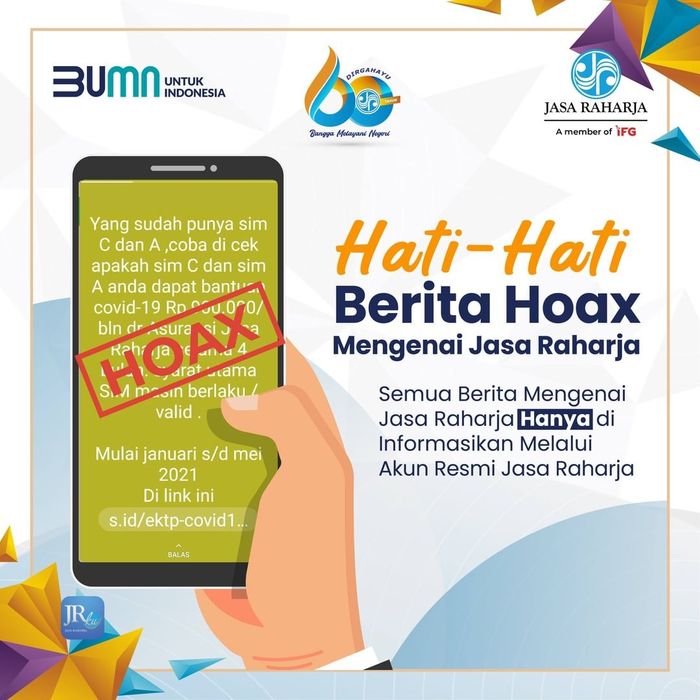 "Hati-hati berita hoax mengenai Jasa Raharja. Semua berta mengenai Jasa Raharja hanya di informasikan melalui akun resmi Jasa Raharja," tulis keterangan dalam unggahan bantahan tersebut.