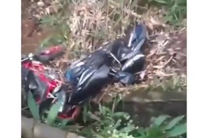 Dalam video tersebut, terlihat sekumpulan warga yang sedang menyeret dan membuang Honda Vario 150 ke sungai.