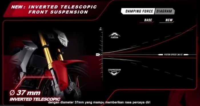 Dimulai dari suspensi depan upside-down ini, yang diklaim bikin traksinya lebih baik dan stabil.