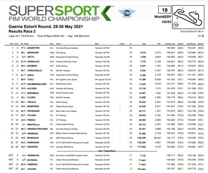 Berikut hasil WorldSSP Estoril 2021 Race 2: