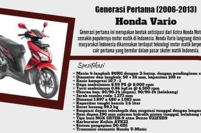 Honda Vario ini muncul sebelum peralihan mesin injeksi.