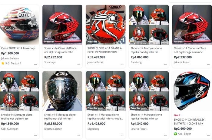 Kalau brother pantau di marketplace, helm-helm ini dijual bebas dengan nama Shoei X-14 Clone atau 1:1.