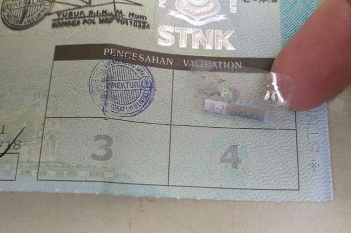 Sedangkan stempel bukti pelunasan di STNK diganti berupa stiker yang dikirim ke rumah sesuai alamat di STNK tersebut.