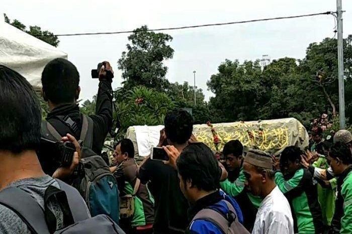 MOTOR Plus-online.com - Rombongan driver ojek online alias driver ojol kawal pemakaman artis ini.