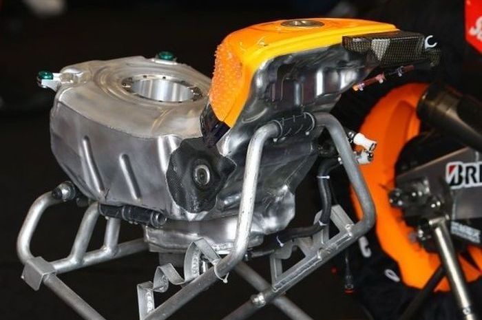 Selain itu, sebagian besar motor MotoGP memposisikan tangki bahan bakarnya di bawah jok.