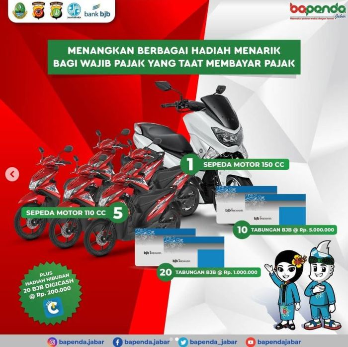 Bagi yang taat bayar pajak kendaraan, bisa menangin hadiah, nih daftarnya.