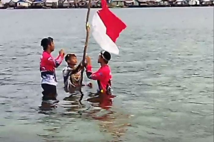 MOTOR Plus-Online.com - Keren nih, Komunitas Aerox 155 Riders Club Indonesia (ARCI) Banggai Chapter gelar upacara Bendera di tengah laut.