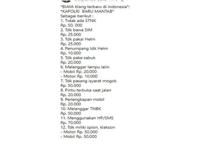 MOTOR Plus-Online.com - Waduh beredar informasi yang menyebutkan adanya rincian denda tilang terbaru.