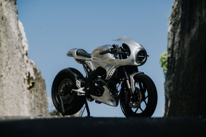 Bengkel motor custom ini sudah mempersiapkan Yamaha XSR 155 dengan konsep cafe racer.