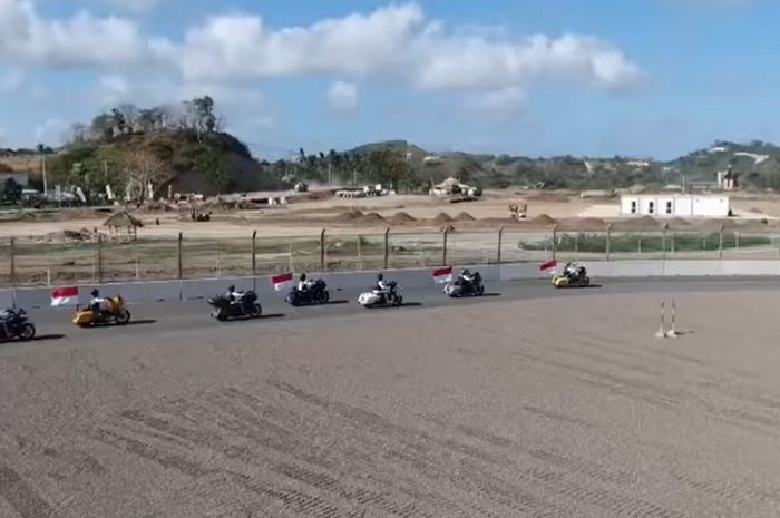 Dalam video tersebut, terlihat sebuah rombongan moge yang berkonvoi di pinggir lintasan sirkuit Mandalika.
