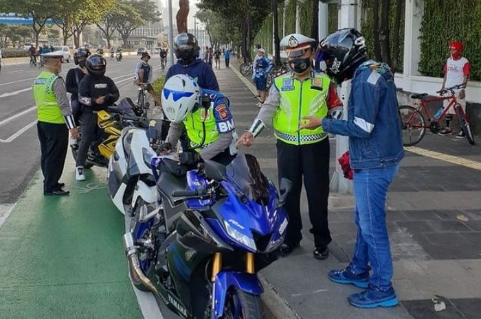 Pemotor yang kendaraannya enggak ada stiker hologram langsung ditilang polisi.